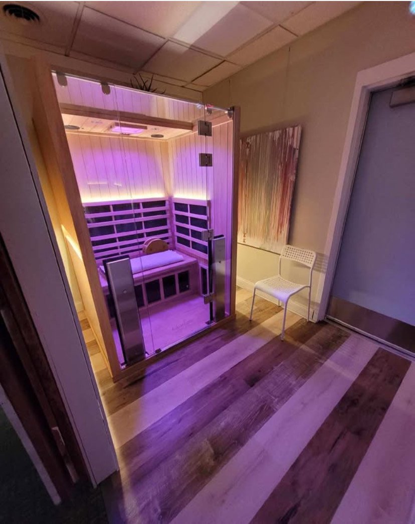 To get the most out of your session, stay hydrated before and after. Infrared heat encourages deep sweating, so replenishing fluids is key. Feel free to arrive a few minutes early and relax in our lounge, where complimentary water and tea are available.